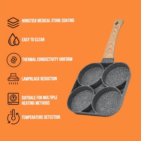 Nadgradite svojo kuharsko igro z našo ponvo s 4 skodelicami proti prijemanju! Je idealna za pripravo štirih različnih jedi hkrati. Se hitro in enakomerno segreje ter je enostavna za čiščenje.