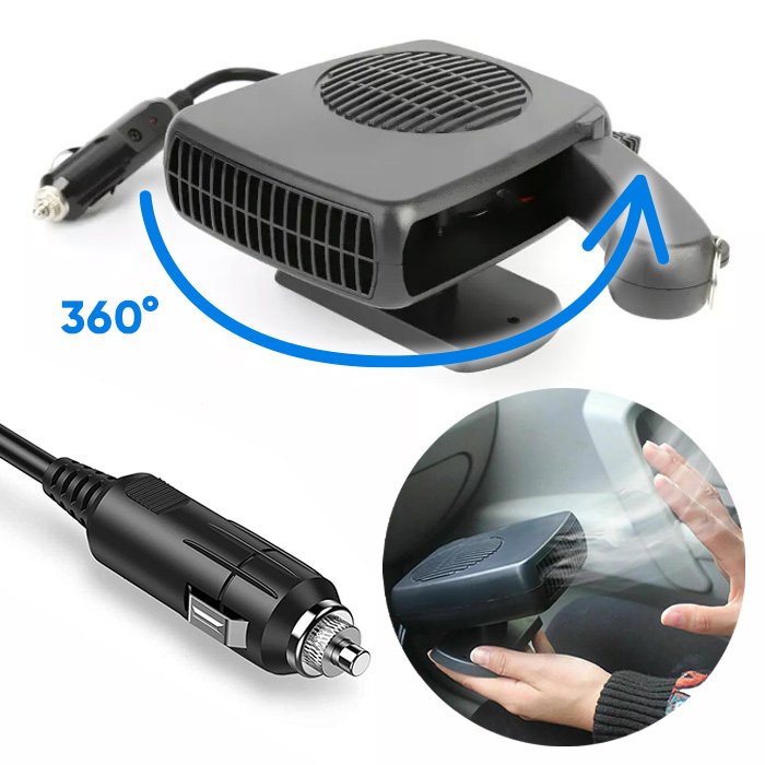 Zasnovan je za hitro odstranjevanje ledu in celo odstranjevanje snega z vetrobranskega stekla vašega vozila, s čimer ohranja vaš vid med vožnjo jasen, da vam je pozimi toplo in poleti hladno. Na podnožju grelnika odstranite zaščitni listek in ga prilepite na armaturno ploščo. Zavrti se lahko za 360 stopinj in tako usmerite grelnik kamorkoli želite.