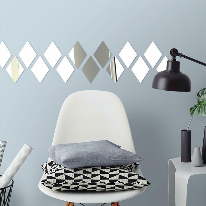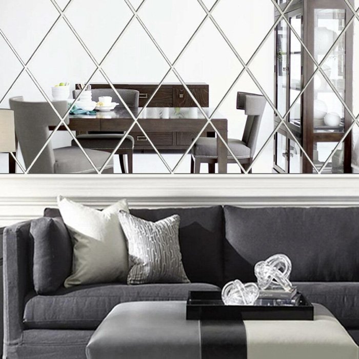 Nalepke so narejene tako, da vam dajo učinek ogledala. Brez težav lahko zamenjate vsa ogledala za zrcalne nalepke, ki vam bodo služila enako, če ne še boljše.