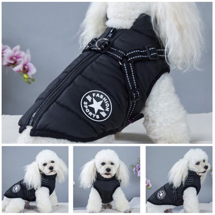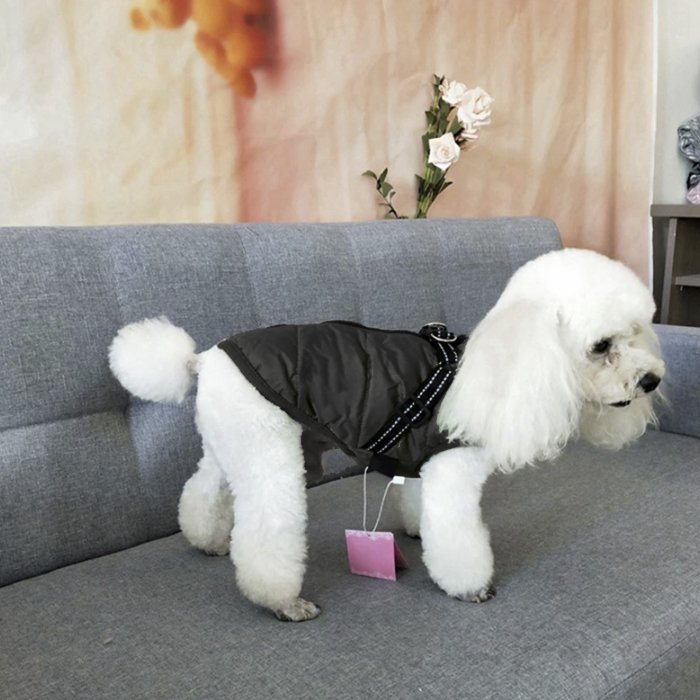 Zasnova oprsnice na hrbtni strani je odsevna in nastavljiva, lahko jo povežete z različnimi povodci za pse. Ni vam treba posebaj kupovati plaščkov in oprsnic, saj vam naš plašček za pse zagotavlja oboje. Kljub dobro pokrivnemu plaščku, psi ne bodo ovirani, ko bodo želeli opravljati potrebo.