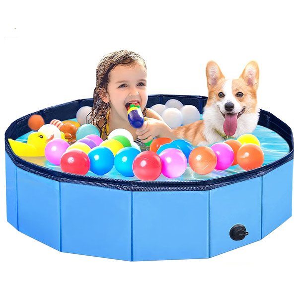 Ta zložljiv bazen se lahko hitro postavi in napolni z vodo, kar omogoča takojšnjo zabavo za otroke in hišne ljubljenčke.
