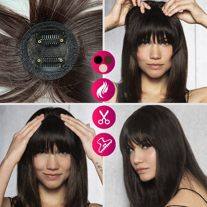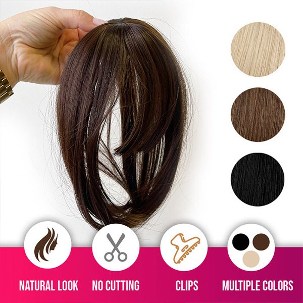 Hairbangs frufru je idealna rešitev za takojšnji naraven in lep izgled vaše frizure. Razlikuje se v treh barvah, črni, rjavi in blond. Omogoča močno pritrditev, obliko frufruja pa lahko priredite svojim željam.