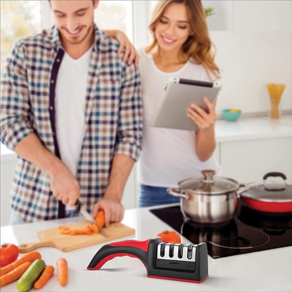 Z uporabniku prijazno zasnovo zagotavlja naš brusilnik nožev hitro in natančno brušenje, zaradi česar je nepogrešljivo orodje za vsakega kuharja in domačega kuharja.