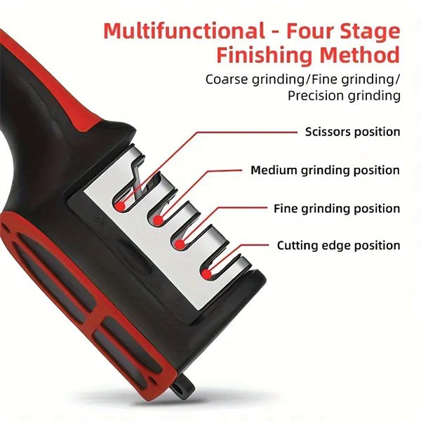 Naš 4 v 1 brusilnik nožev je zasnovan za enostavno brusenje in obnavljanje rezila vaših kuhinjskih nožev, škarij in drugih orodij.