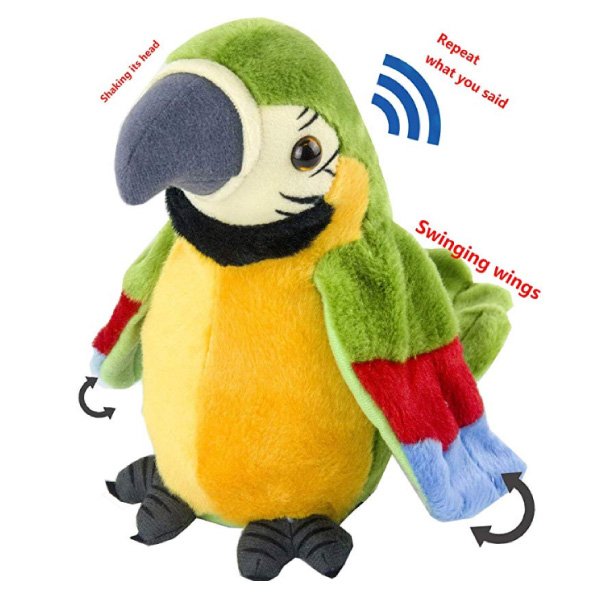 Ta očarljivi papagaj se ponaša z vrhunsko tehnologijo prepoznavanja glasu, ki mu omogoča ponovitev besed, izrazov in celo petje pesmi, tako kot pravi papagaj!