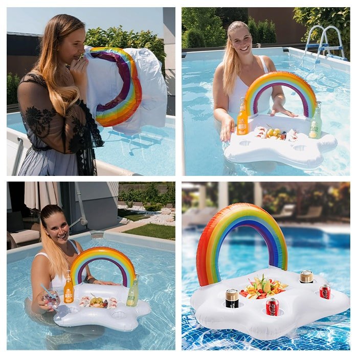 Sestavljena je iz čudovitih oblačkov in mavričnega loka, kar predstavlja dodaten kompliment vsakemu bazenu ali vašim fotografijam, ki jih boste naredili ob njej.