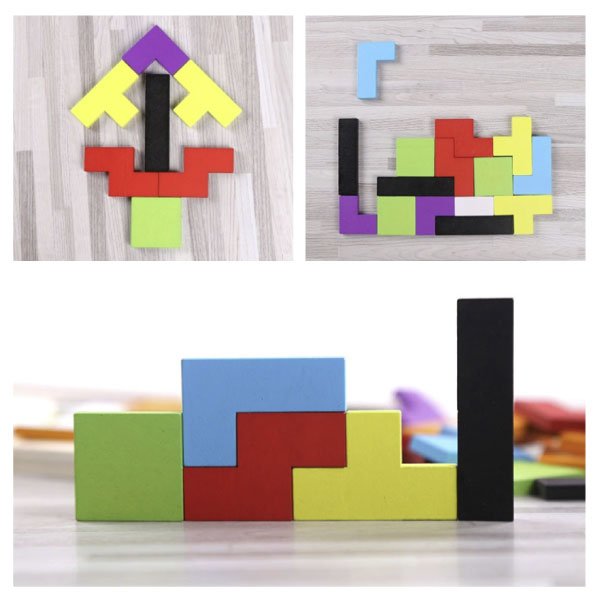 Domiselna zasnova omogoča različne načine uporabe. Sestavljanka se lahko sestavlja znotraj okvira, lahko pa raznolike koščke uporabimo za sestavljanje poljubnih oblik.