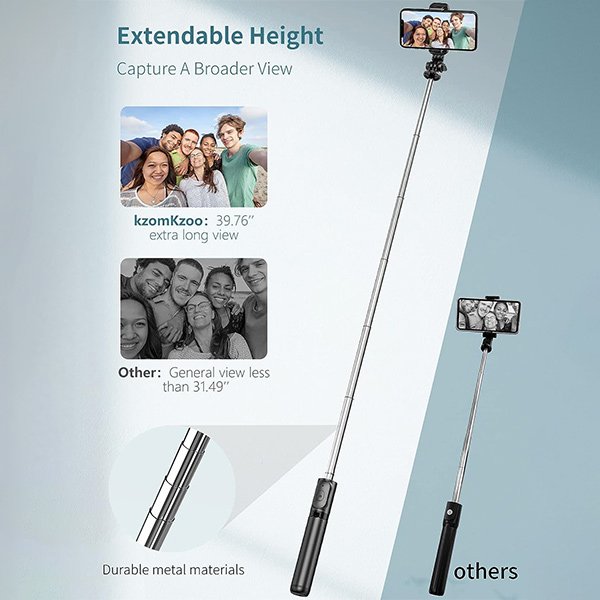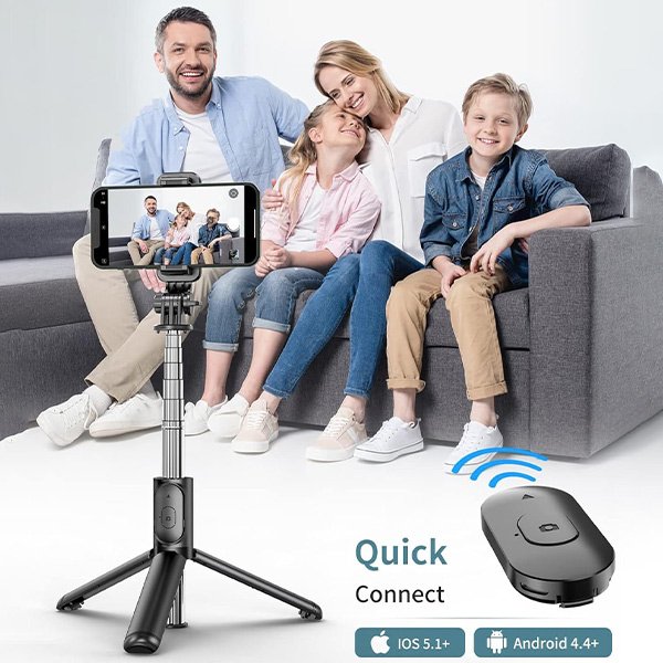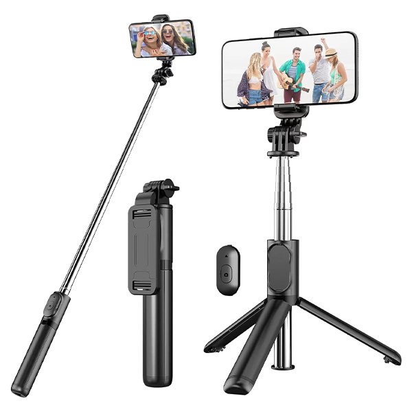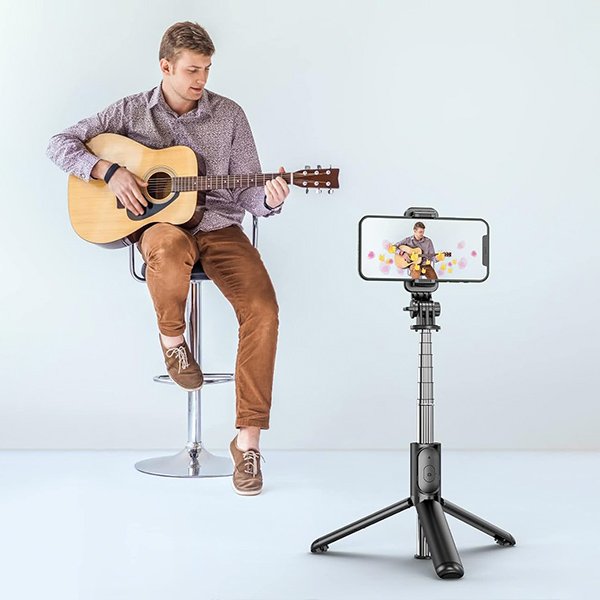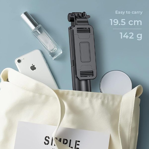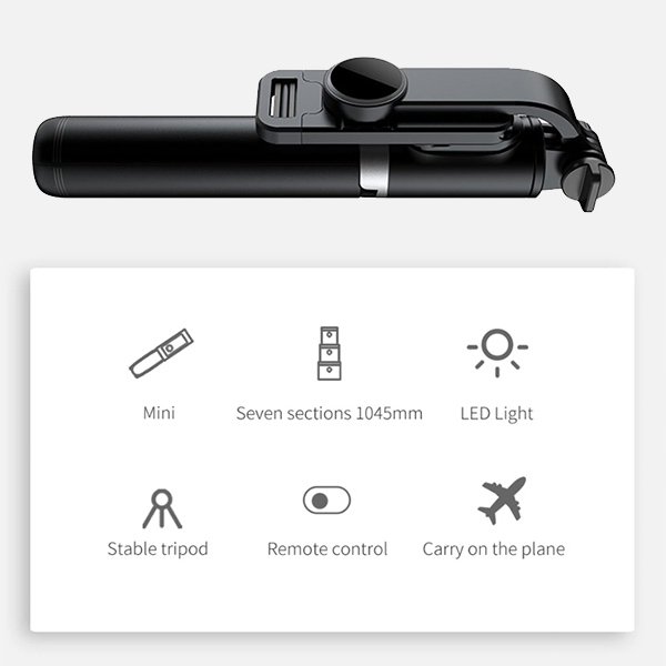 Selfie Stick Tripod se enostavno pretvori v selfie stick ali stojalo za vaš pametni telefon z brezžičnim daljinskim upravljalnikom. Stojalo je kompaktno in njegova zložljivost omogoča enostavno prenašanje. Poleg tega je vgrajena tudi lučka, ki osveti željene elemente.