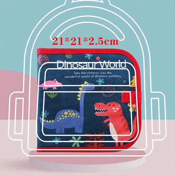 Zvezek je lepo oblikovan, na platnici otroka pozdravi prikupen motiv dinozavrov. V notranjosti so strani za ustvarjanje, ki ponujajo prosto črno podlago.