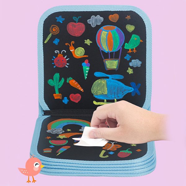 Umetnine v tem zvezku lahko enostavno pobrišemo, tako da nikoli ne bo zmanjkalo prostora za sproščanje otroške kreativnosti.