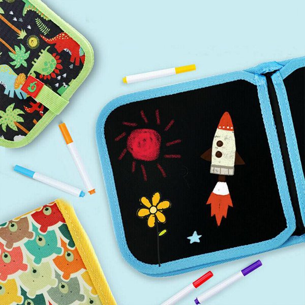 Komplet vključuje zvezek, set flomastrov in dve krpici za brisanje umetnin.