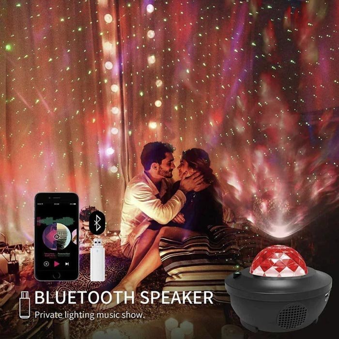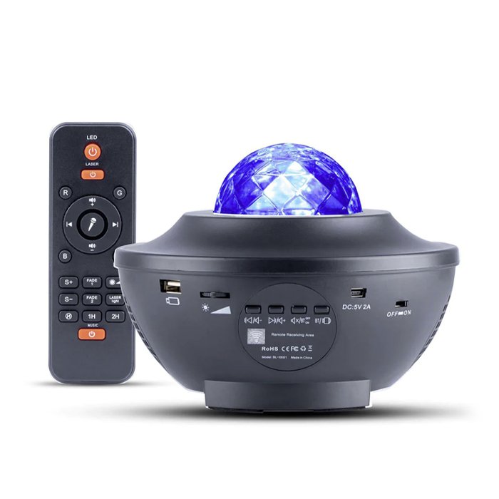 Z daljinskim upravljalnikom, lahko nadzorujete svetlobo zvezdnega projektorja, ga ugasnete in prižgete, zato vstajanje ne bo potrebno. Z njim lahko spreminjate barve, pisane luči, spremenite način osvetlitve, menjate glasbene pesmi in nastavite časovnik. Najnovejši zvočno aktiviran način utripanja omogoča, da projekcija spremeni barvo ali vzorce glede na ritem glasbe ali ploskanje z rokami.