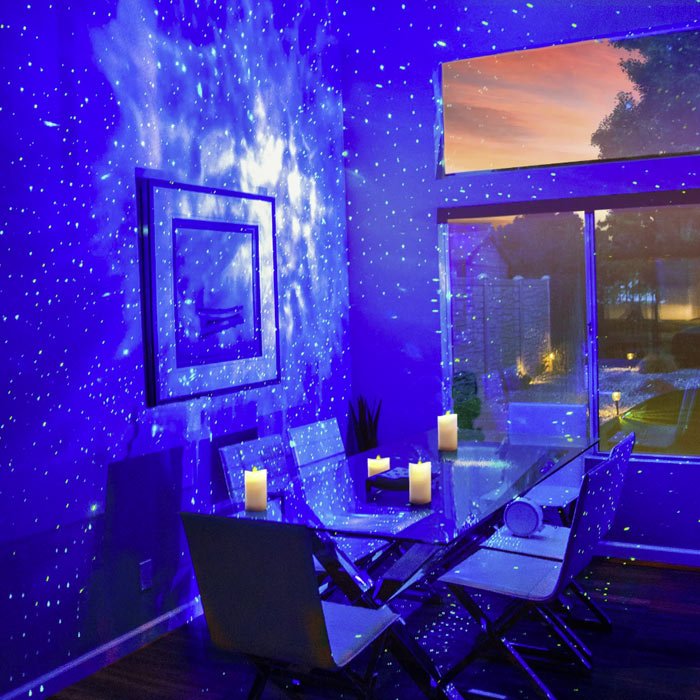 Zvezdni projektor lahko projecira kar 21 različnih barv. Da dobimo toliko kombinacij, se meša 5 standardnih barv (rdeča, modra, zelena, bela in zelena lasarska točka) med seboj. Različne barve v kombinaciji z dinamično nočno projekcijo različnih hitrosti ustvarjajo sproščeno, romantično in barvito ter zabavno vzdušje v prostoru s čudovito zvezdnato svetlobo.
