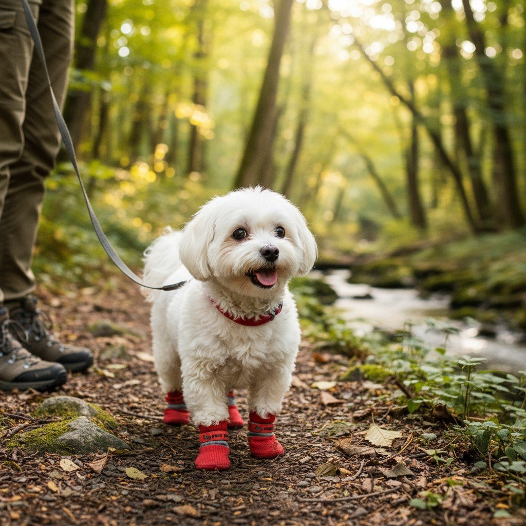 O: Preverite, ali čevlji pravilno sede in prilagodite trakove. Postopoma uvajajte čevlje psu, dovolite jim, da jih nosijo začetno za kratka obdobja.