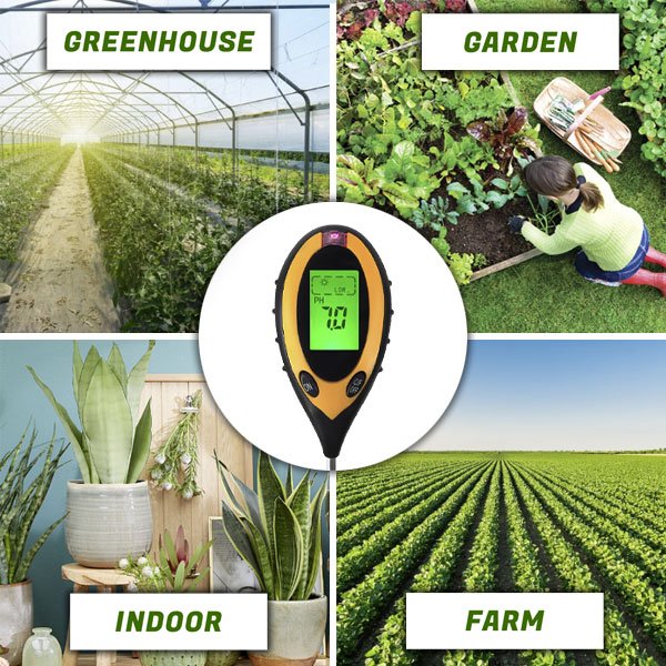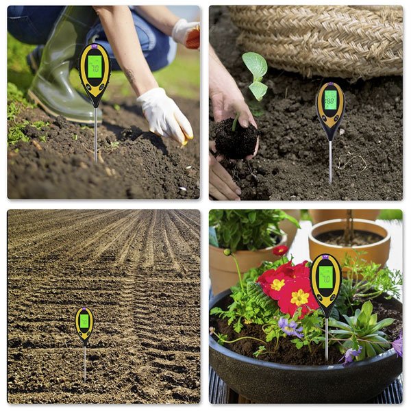 - Funkcije, ki jih ponuja merilnik so: merjenje vlage tal, temperature tal, pH tal in intenzivnost sončne svetlobe