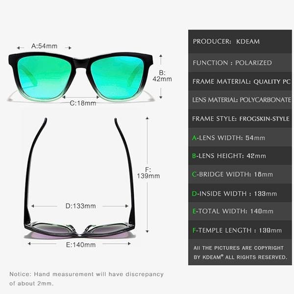 Okvirji so izdelani z trpežnega materiala, za katerega velja izjemna fleksibilnost ter odpornost na pritisk in vročino. Polarizirana očala so zasnovana tako, da zmanjšujejo intenzivno bleščanje sončne svetlobe na snegu in vodi. Sončna očala so primerne za tiste, ki sledijo modnim smernicam, hkrati pa želijo uporabna in kakovostna sončna očala za različne namene.