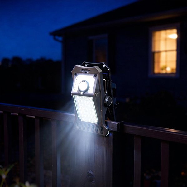 Odlična mala lučka za kampiranje in dvorišče. Pripela sem jo na drog šotora, pozneje pa še na ročaj vozička — nič ne drsi. Prižge se samo, ko je treba, zato ne zapravlja energije. Izdelava deluje robustno, nastavitev kota pa zelo pomaga.