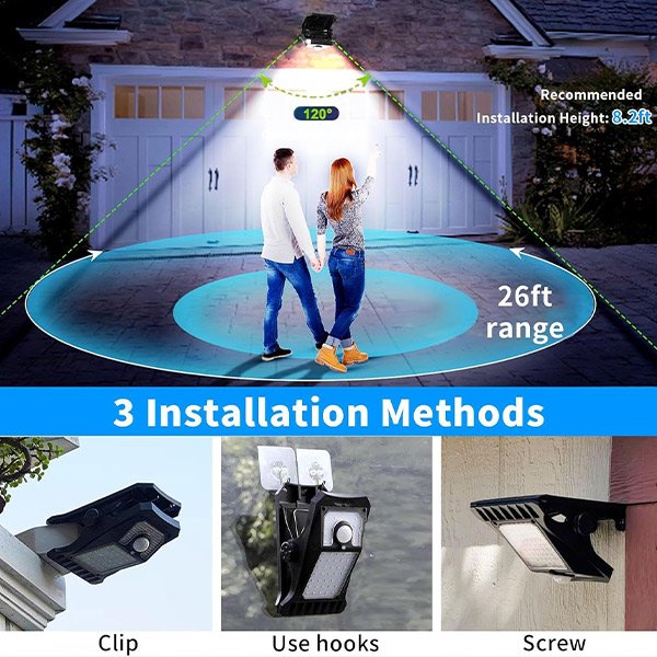 Takoj zazna gibanje in zapolni temne površine z svetlo, odzivno svetlobo (do 300 lumnov), ki odvrača vlomilce in vodi goste. Napredni PIR senzor reagira v nekaj sekundah na razdalji do 6–8 m in vključuje nastavljivo občutljivost ter nastavitve časovne omejitve, tako da nadzirate, kdaj in kako dolgo sveti.