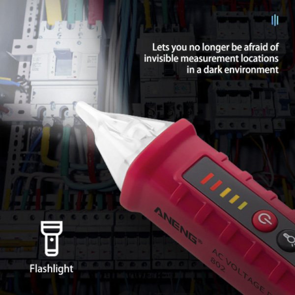 Z brezkontaktnim detektorjem se vam ni potrebno fizično dotikati strojne opreme, saj deluje tako, da zazna izmenično električno polje, ki ga ustvarjajo napetostne žice. S pisalom lahko preverite in izmerite AC napetost od 12 V do 1000 V.