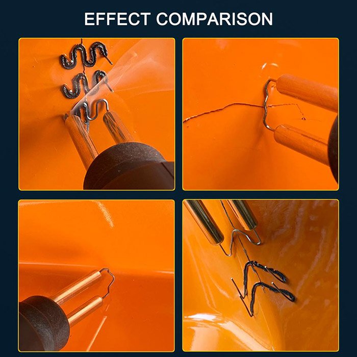 Izberite primerne sponke za varjenje glede na razpoko plastike, vstavite medeninasto držalo in pritisnite gumb za vklop. V dveh sekundah se bo varilec segrel. Prislonite sponko na želeno mesto in počakajte, da se plastika počasi stopi. Bodite pozorni, da ne boste predmeta preluknjali.