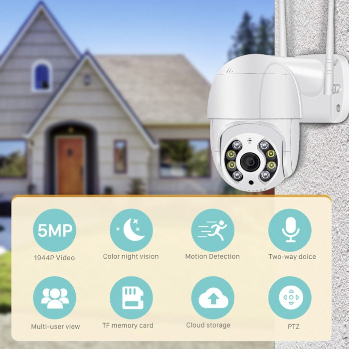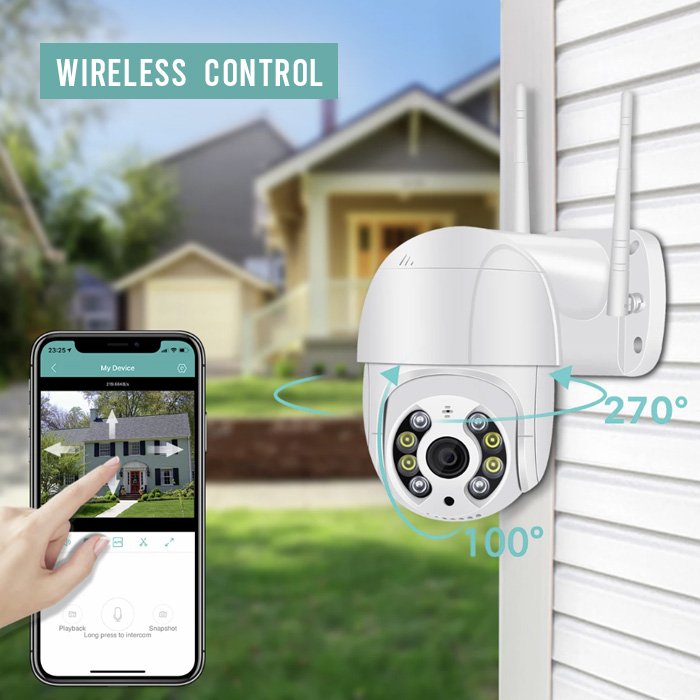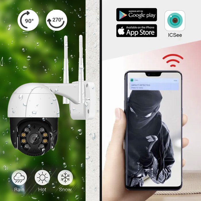 IP66 zaščitno ohišje poskrbi, da kamera deluje tudi v ekstremnih vremenskih razmerah, tako bo kamera učinkovito delovala tudi v najtežjih pogojih. Kamera se lahko vrti za 270 stopinj levo in desno ter 90 stopinj navpično, kar omogoča, da posname vsak kotiček okoli vaše hiše.